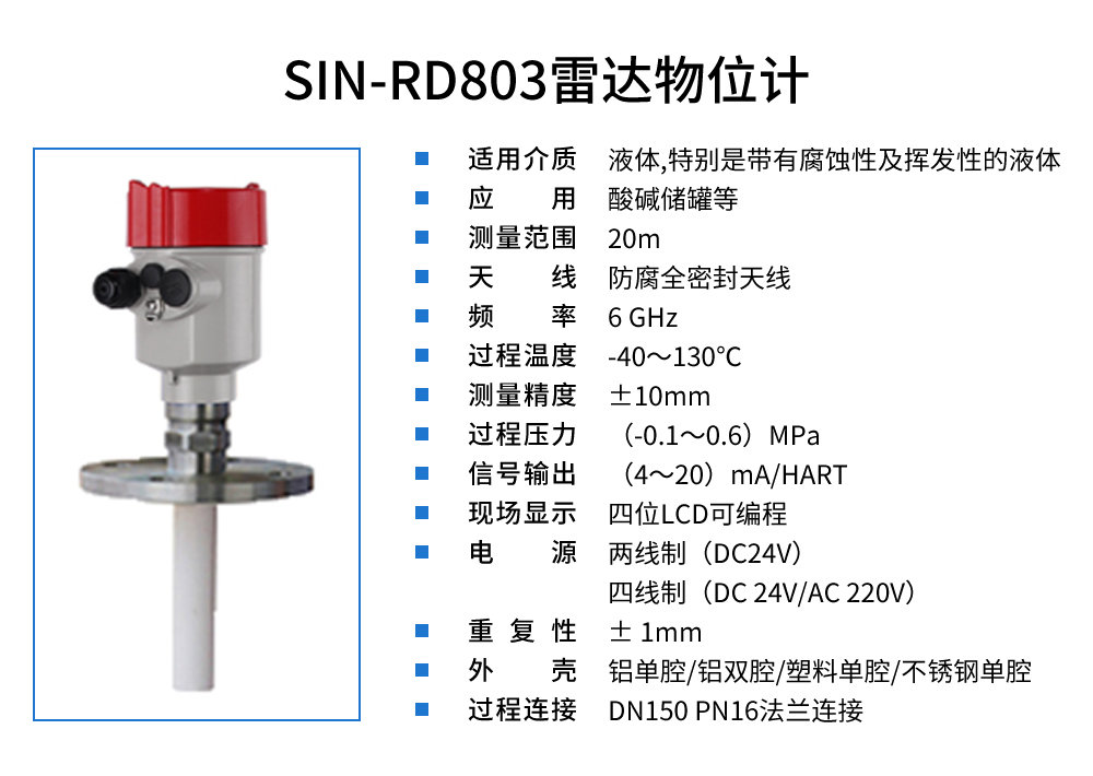您的位置:首頁 > 雷達(dá)液位計 → SIN-RD803T雷達(dá)物位計_適用于帶有腐蝕性及揮發(fā)性的液體_